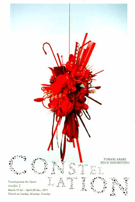 「CONSTELLATION」は星座の意。「すべてのものには星座のように、眼に見えない形や物語がある。」という一見女性らしい繊細なメッセージと、多様な材質や形のものを彼女らしく集積させる作品画像を見比べながら、きっと宇宙にひときわ異彩を放つ荒木星が、ギャラリー空間に燦然と輝くであろうと想像するのはとても楽しいです。