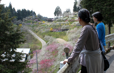 おなかも満たされたところで、一行は小渡から10分ほどのところにある、しだれ桃の里で有名な上中町へ「上中のしだれ桃」を見に行きました。