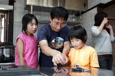 ![]() 弁天サロンのガスコンロで磁石づくり |