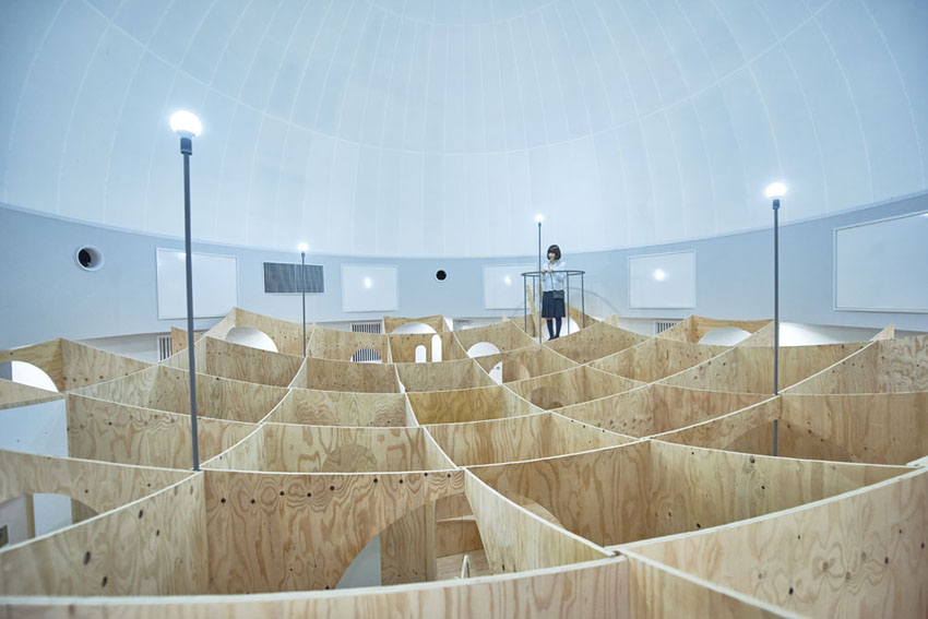 外周の壁の所々に空けられた大小異なる大きさの穴から、異なる部屋をのぞき込むことができるのも、顕微鏡や望遠鏡から極小の、あるいは果てない宇宙をのぞく行為と似ている。そこで何を見つけることができるか、それは体験する人次第だ。